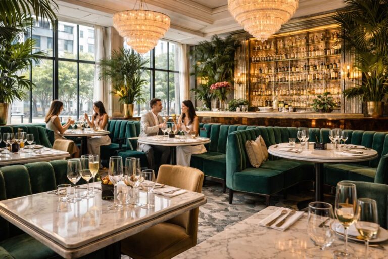 Located in the heart of Spinningfields, The Ivy Manchester Brasserie is one of the city’s most visually striking dining venues. Known for its Art Deco–inspired interiors, rich emerald tones, statement lighting, and dramatic bar presence, it delivers instant atmosphere the moment you walk through the door. This is not quiet, candlelit seclusion. This is Manchester romance with sparkle — polished, lively, and designed for evenings that feel like an occasion. If you want your date night to feel elevated from the first cocktail to the last dessert, The Ivy sets the tone effortlessly.