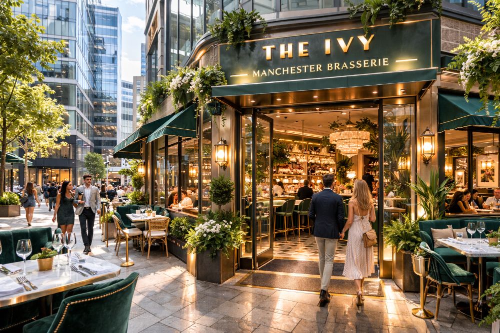 The Ivy Manchester Brasserie is ideal for couples who want romance that feels stylish, energetic, and confident.
